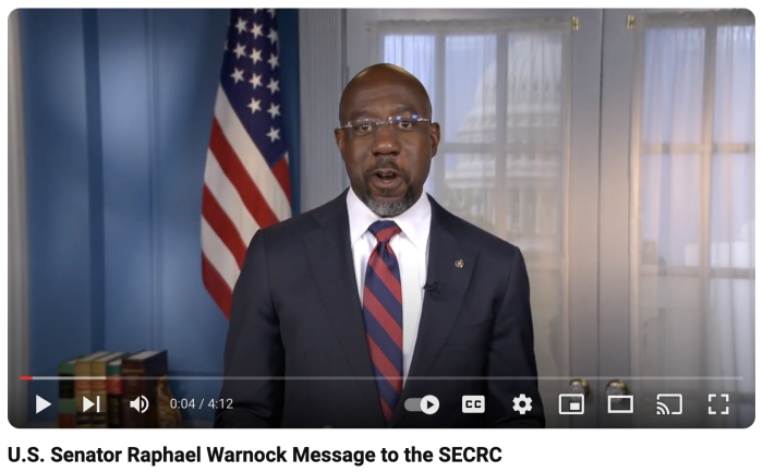 U.S. Senator Warnock Delivers a Message to SECRC Members Hear from U.S. Senator Warnock in a message specifically to the SECRC and Council Delegates following his visit to the Savannah Training Center: https://youtu.be/k-S_4ZBuPzM Return to News